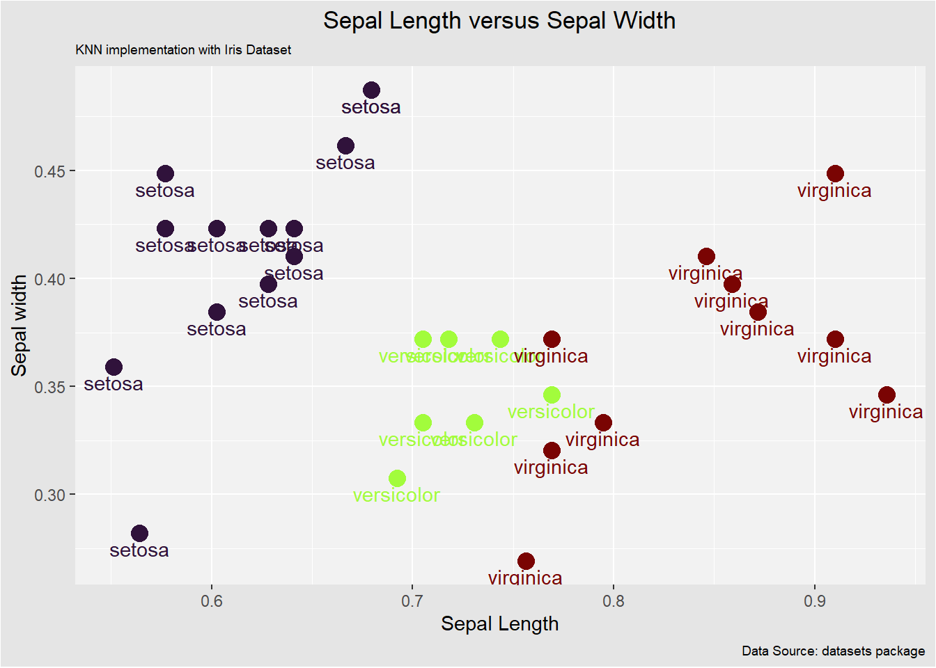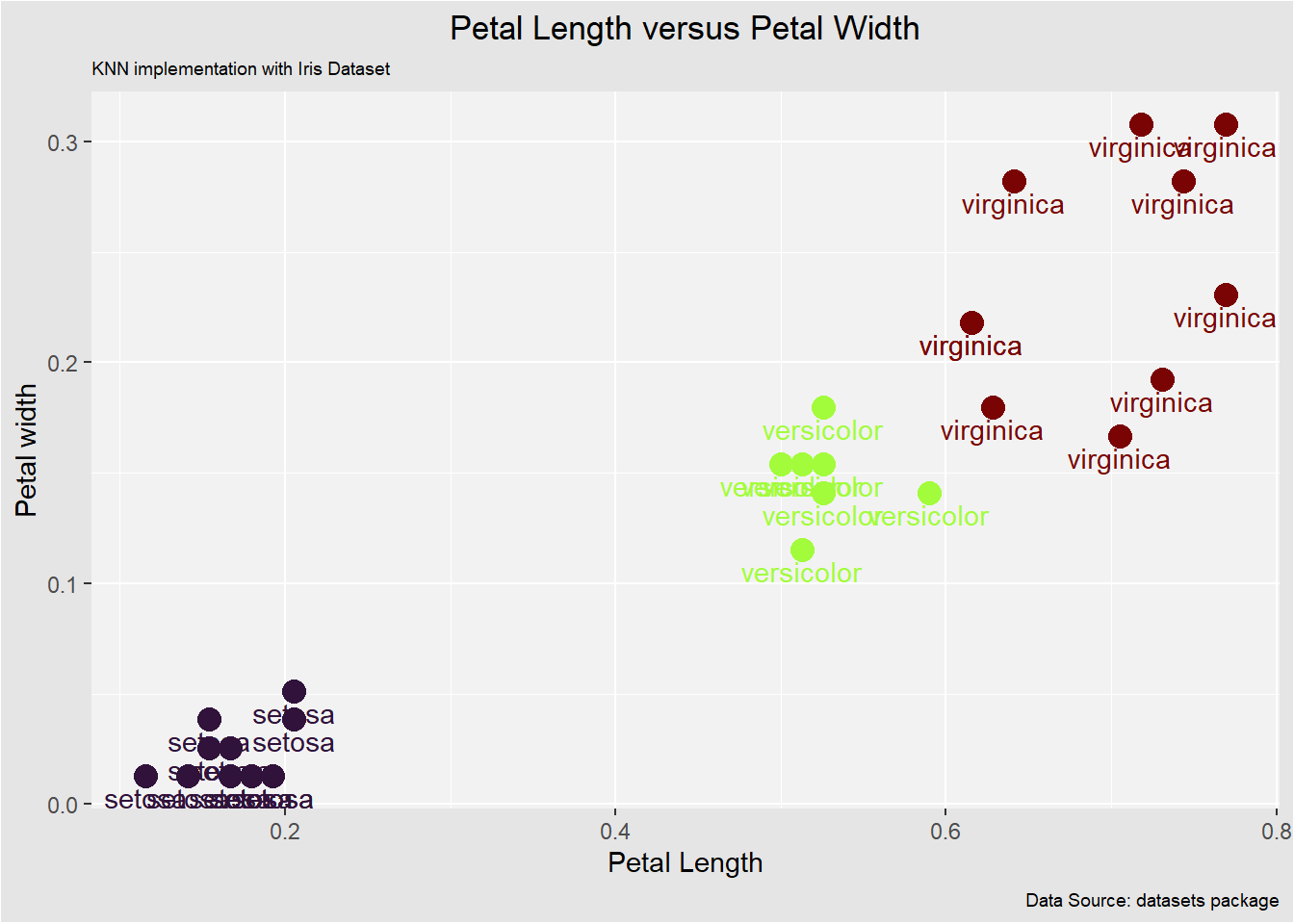 K - Nearest Neighbor is a supervised machine learning algorithm that classifies a new data point into the target class depending on the features of the neighboring data points. The objective of this paper is to demonstrate how the algorithm works using the R programming language. We will use the famous Iris dataset to run the algorithm.